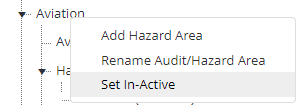 However, inactive Hazard Areas can only be managed through the Audit Setup screen, not from within the module.