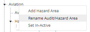 You can also rename any of the areas, by right-clicking on the name in the hierarchy tree and pressing Rename Audit/Hazard Area.