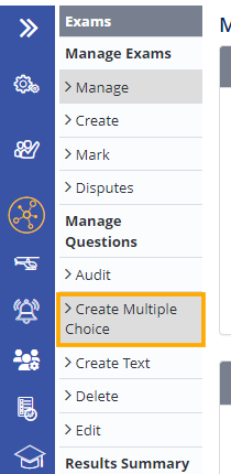 - Under the Manage Questions section on the left-hand side of the page, choose >Create Multiple Choice