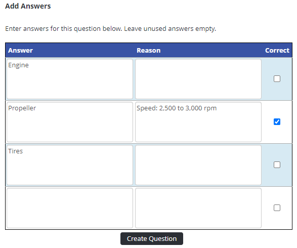 - When ready, click on the Create Question button.