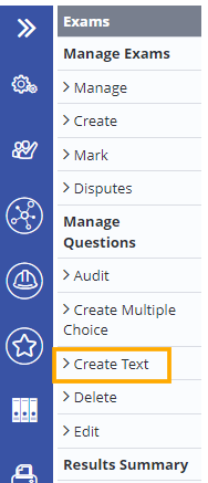 - Under the Manage Questions section on the left-hand side of the page, choose >Create Text
