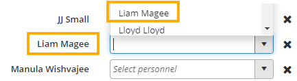 - After all the personnel have been chosen, click on the Save button on the right-hand side of the section to save the changes.