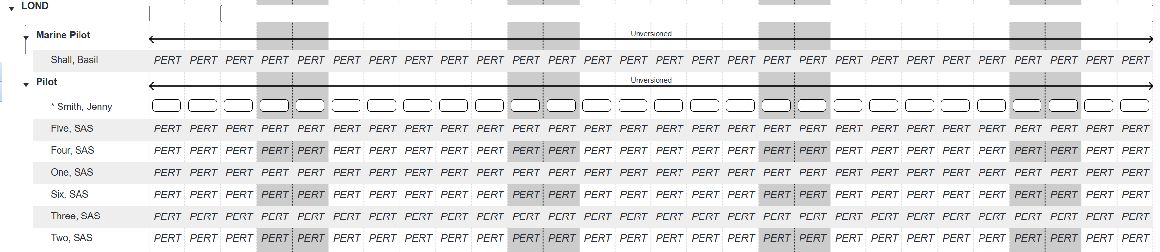 When touring personnel, their names will not disappear from their Home Base's Roster. However, their roster tiles will be uneditable and will include the new base's short name to indicate the users are touring.