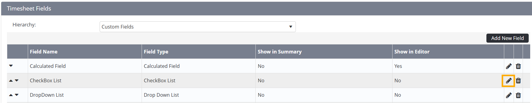 Click on the pencil of an existing custom field by clicking the pencil icon (or create a new one).