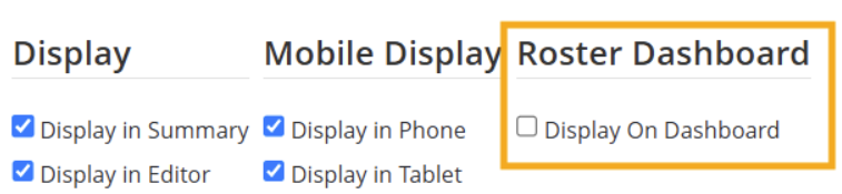Please note to avoid applying Update Rules and Display Conditions on Custom Fields you want to show on the Roster Dashboard. This functionality is not yet supported due to the lack of interactivity of the dashboard.