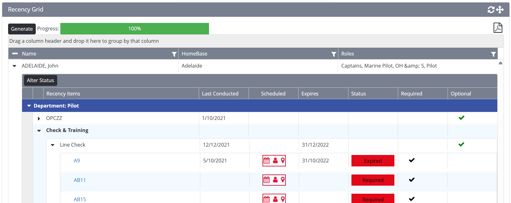 - The system will take a moment to generate a list of pilots and their "Pilot" Recency Items.