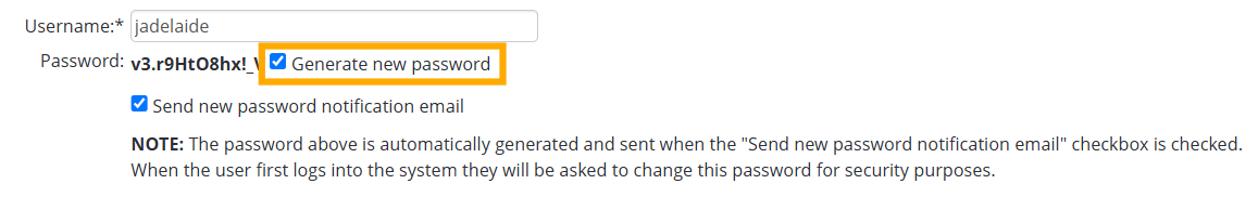 - Tick the Generate new password checkbox.