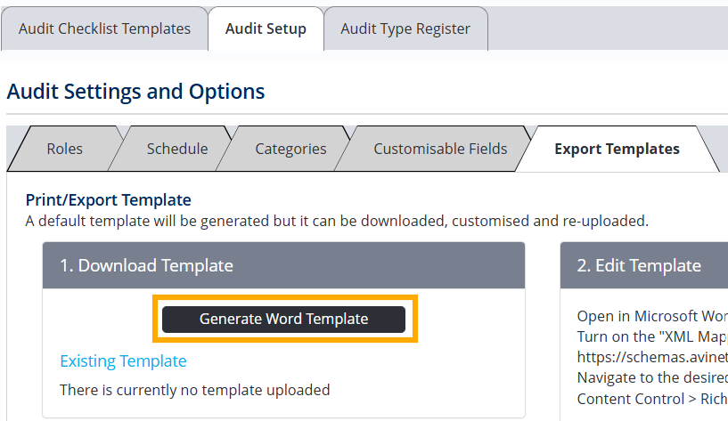 - In the 1. Download Template section, click Generate Word Template.