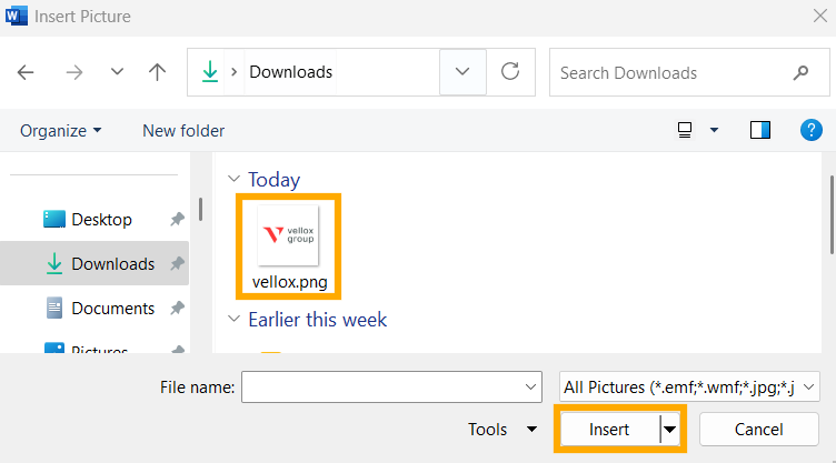 - Browse your computer for your new logo image, select it, and click Insert.