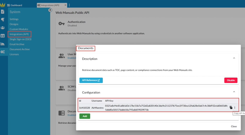 In Web Manuals, generate your API key.
