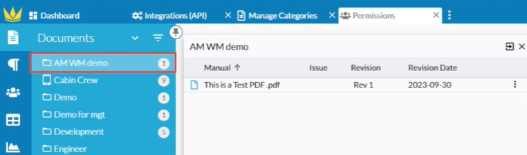 To control which manuals flow into Air Maestro, set the appropriate permissions in Web Manuals for the categories you want synchronised.
