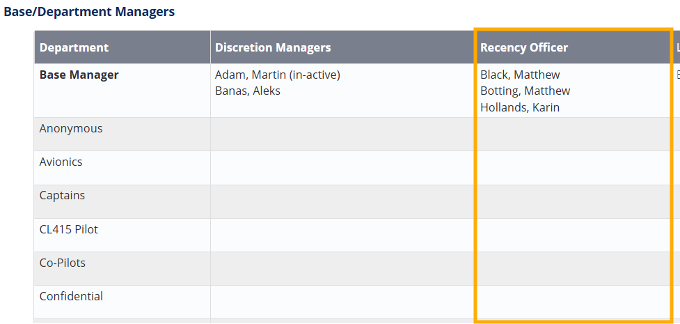 Base Recency Officers and Base Department Recency Officers