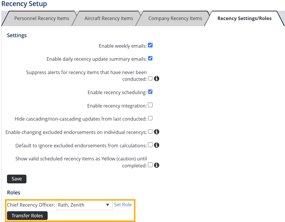 On the same Recency Settings/Roles page, you can also choose the Chief Recency Officer role.