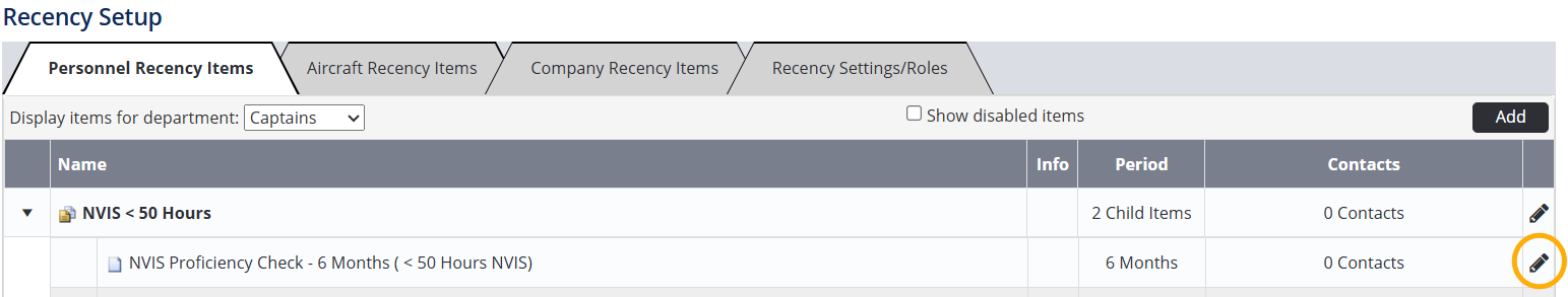 In Air Maestro, Contacts are the people or roles that receive notifications for expiring recency items. They can be assigned to any type of recency item: Personnel, Aircraft or Company.