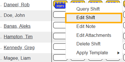 You can also use the "Query" cursor or right-click to preview and edit a specific shift within the Roster: