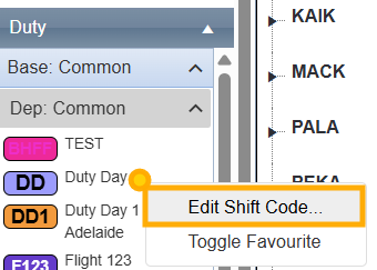 To preview and manage details of a shift, right-click on the shift in the left-hand side column: