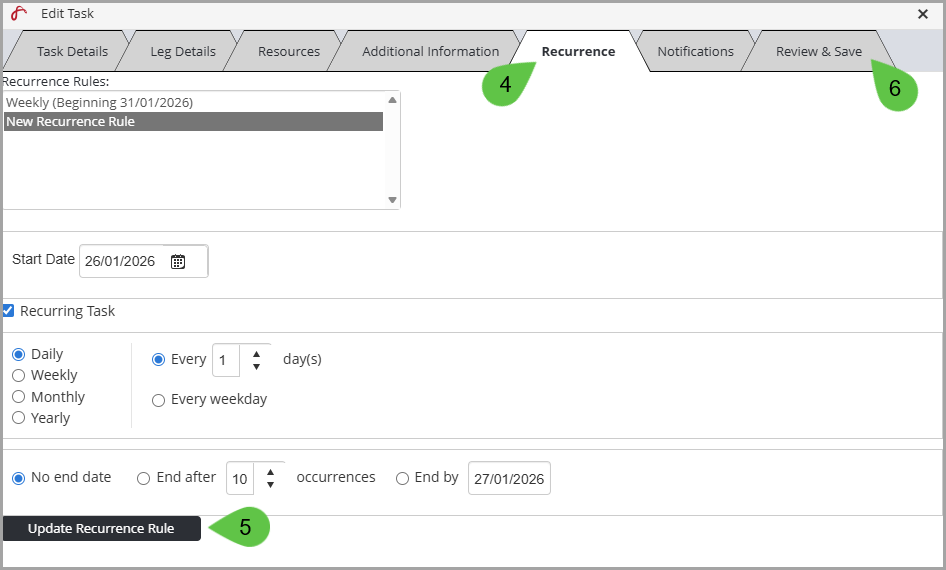 5. Click Update Recurrence Rule.