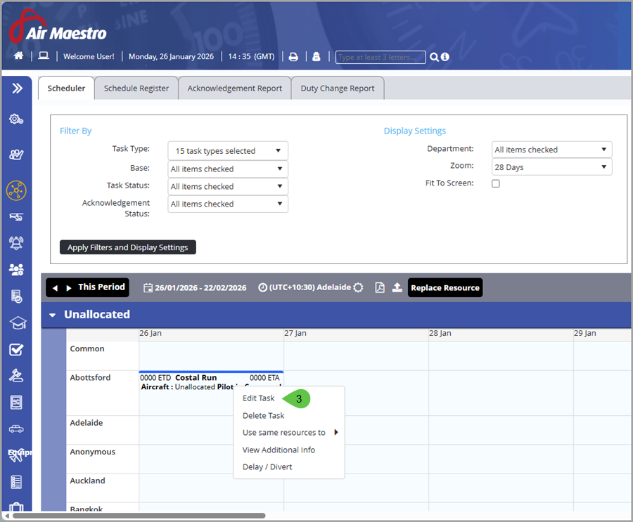 3. Right-click on the required task and click Edit.