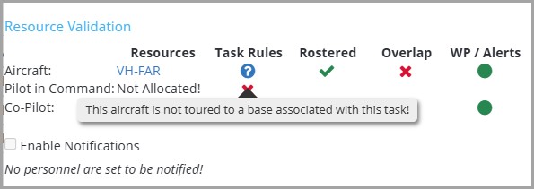 This icon alerts you that a resource or aircraft may not be available or in the correct location. It indicates there is information that may need to be checked.