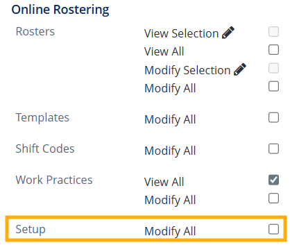 Requires access to Online Rostering > Setup > Modify All