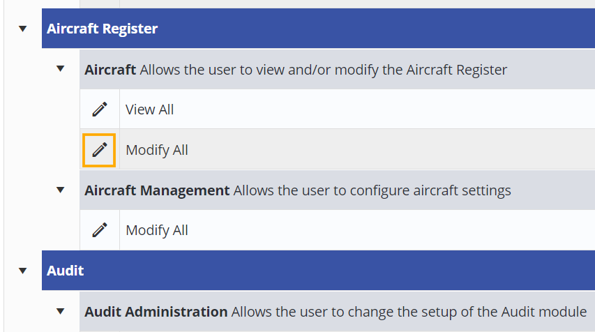 - Click on the pencil next to the Access Level you wish to modify.
