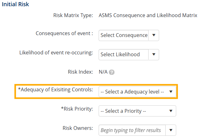 During the creation of a new Risk in the Hazard Register, you will be asked to select Adequacy of Exisiting Controls: