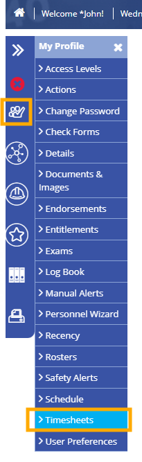 The Timesheet tab is located under "My Profile".