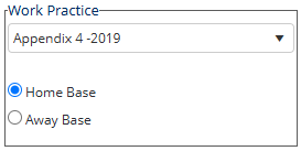 5. Select the Work Practice relevant to the shift and Home or Away base.