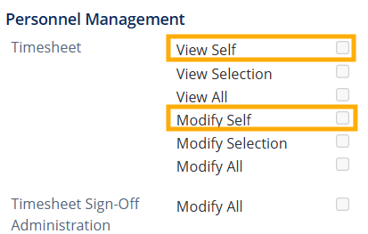 - the user has the View Self and Modify Self access at a minimum in their Timesheet Access Levels