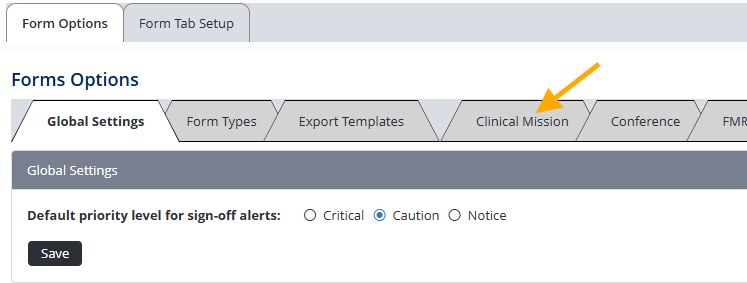 In this example, the "Clinical Mission" Form Type is used. - Scroll to the Form Alert Setup pane.